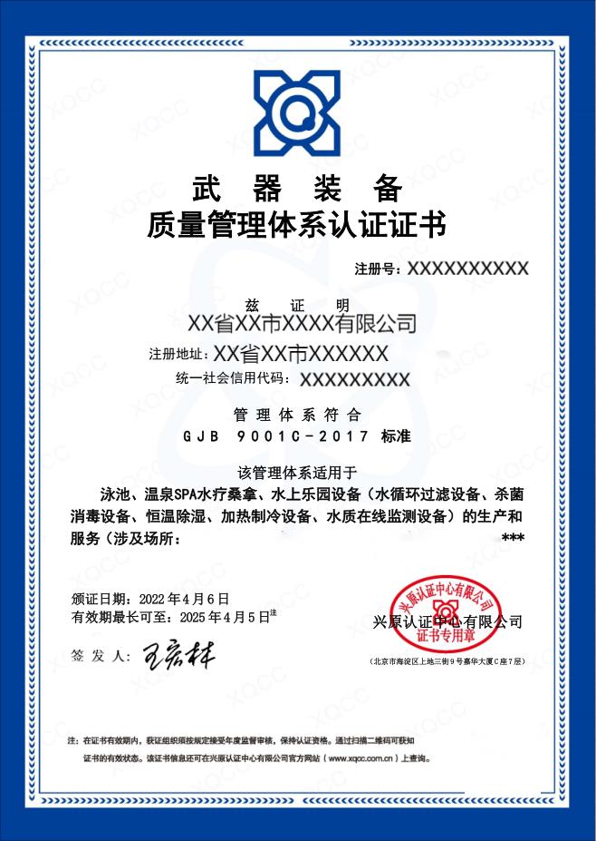 国军标质量管理体系认证(GJB9001C-2017)是国家军用标准,,,也叫武器装备质量管理体系认证,,依据《武器装备质量管理条例》相关规定,,,武器装备以及用于武器装备的计算机软件、、专用元器件、、配套产品、、、原材料都应进行质量管理,,武器装备论证、、、、研制、、生产、、、试验和维修单位应当建立健全质量管理体系,,,,对其承担的武器装备论证、、研制、、、、生产、、、试验和维修任务实行有效的质量管理,,,确保武器装备质量符合要求